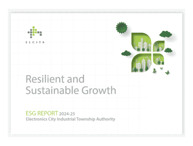 As the first industrial township authority in Karnataka, ELCITA has been at the forefront of sustainable urban development. Each year, we publish our Environmental, Social, and Governance (ESG) Report to share progress, challenges, and milestones in building a future-ready Electronics City.